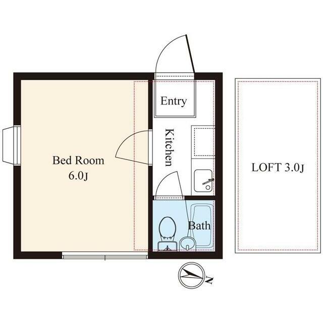 | 間取り | 1K(洋6 K2.5 ロフト3) | 主要採光面 | 東 |
