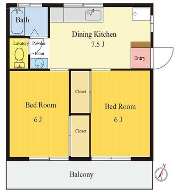 | 間取り | 2DK(洋6 洋6 DK7.5) | 主要採光面 | 南西 |